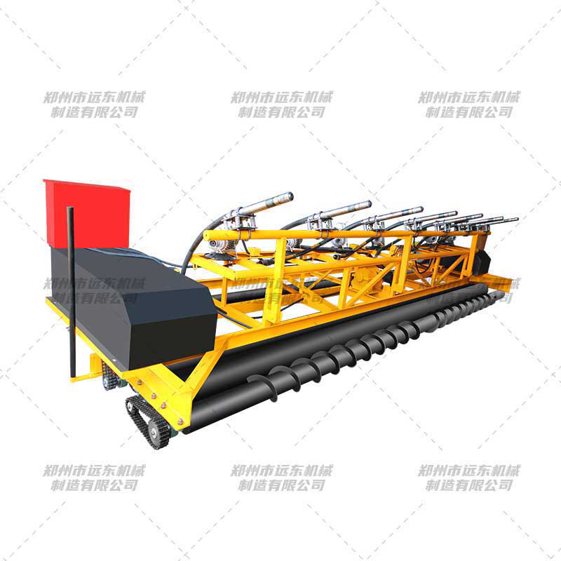 四辊轴排振一体摊铺机,应用于各类公路、市政道路、广场、机场跑道等混凝土施工中的深层振捣以提高密实度。 1、排式振捣机为自行走设计、降低工人的劳动强度,提高施工效率。 2、排式振捣机可实施对混凝土深层振捣提高密度。 3、该设计可调整滚轮间的宽度,路面宽幅从3.5-6米任意调整,提高施工的适应性。 4、该设计具有独特的排振杆自如升降系统,振捣深度可自如操作,转移工地时排振杆可自如提起。 5、摊铺振捣一体机及多种功能于一体,更加合理与人性化。