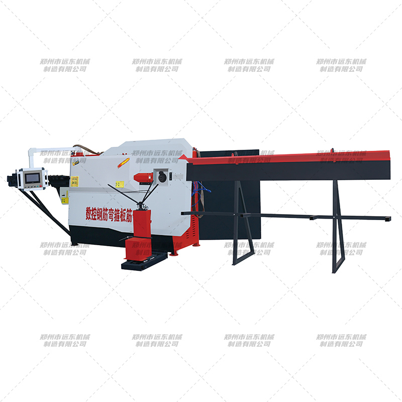 该机适用于钢筋配送中心、建筑工程场地、PC工厂、高铁、高速、核电、民建等建设域。可加工到16mm的盘条钢筋,既可以加工箍筋,又可以自动加工各种长板筋,伺服驱动的回送弯曲可以自动设置弯曲各种长度和角度的板筋钩,大型伸缩式接料机构设计,加工范围大,具有防扭转矫正机构,了成品的精度和平整度。一机多能,大量应用于钢筋加工配送工厂。全数控自动加工各种箍筋、长板筋的多功能弯箍机,板筋、箍筋功能切换在2秒内数控自动智能切换,不需任何人工调整。大型结构设计,加工范围大,加工板筋钩的宽度可达1米,板筋长度达到12m;箍筋边长达到2350mm。 1、圆盘式两级伸缩弯曲机构,回送弯曲效率高,工作稳定。 2、伸缩式接料机构,避免钢筋窜出,工作可靠,噪音小。 3、翻板式两级接料,方便成品收集整理。 4、具有扭转矫正机构,可成品板筋的平直度。 5、四轮式伺服驱动回送机构设计,实现多步回送弯曲,回送达到±1mm。