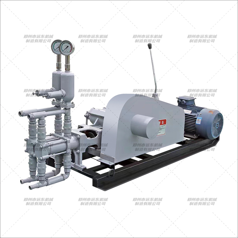双液变量注浆泵主要用于软基加固,隧道预注浆,堵水及破碎岩石的固结注浆工程。 SYB-140/6型双液变量注浆泵为卧式双作用往复式活塞泵,该泵为双进双出泵,有两个吸浆口,两个排浆口,可进行双液注浆作业,出浆比例1:1,注浆速度由变速箱控制分4种速度,对应不同的出浆排量,由于该泵两缸同时输出浆液,通过混合器,混合可达到较准确的混合比例,对浆液的凝胶时间更容易控制,从而能有效地掌握浆液的扩散半径,进而提高注浆工程的质量,降低注浆工程的成本。 1.双缸双液注浆泵的压力高,流量大。 2.双缸双液注浆泵可任意比例注两种浆液。 4.双缸双液注浆泵采用液压机械换向,无复杂电器元件,基本无易损件,操作方便,动作可靠。 5.双缸双液注浆泵现场操作人员即可熟练操作,方便维护和维修。